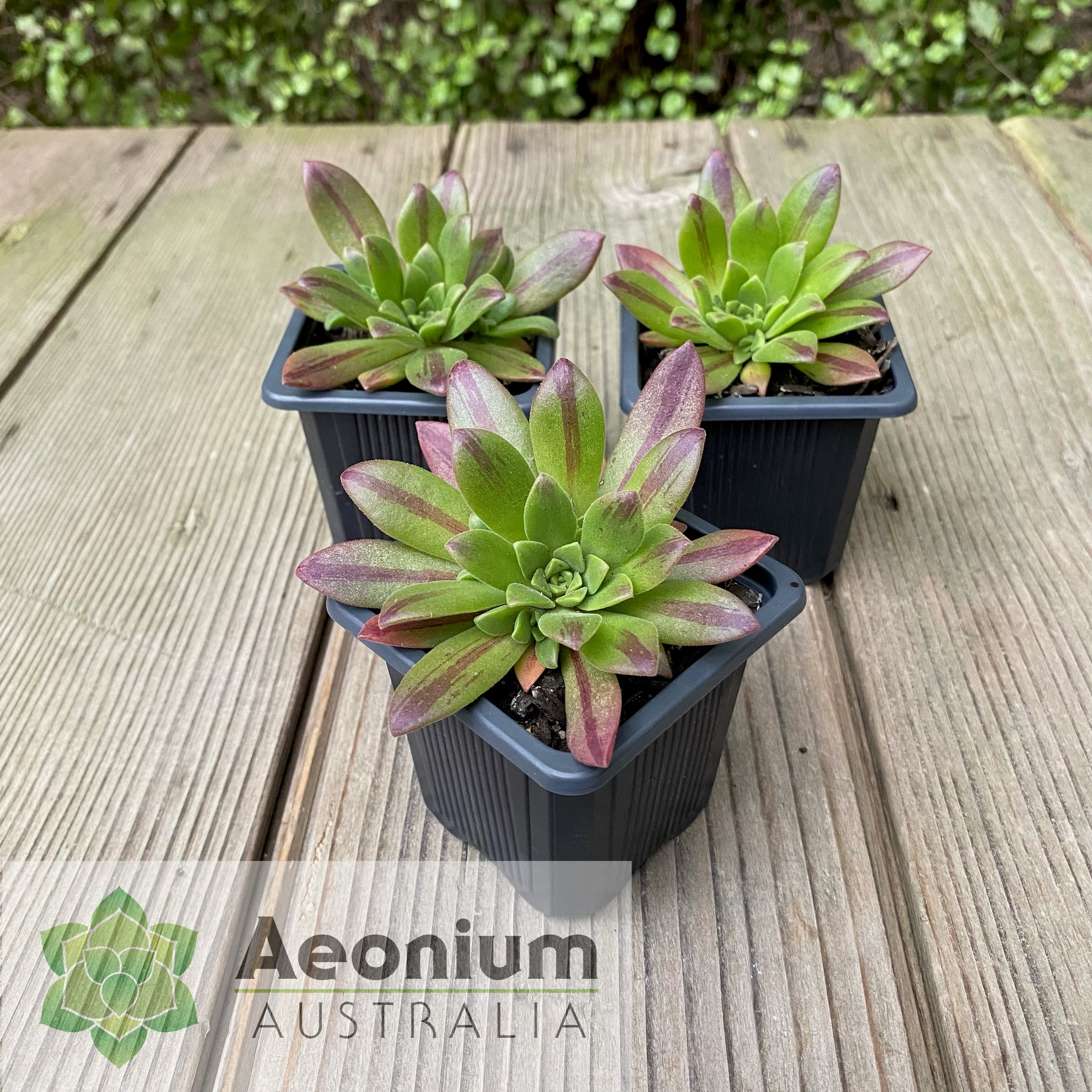 Origins: A hybrid involving Aeonium lindleyi var. lindleyi which was created by Glenn Barber here at Aeonium Australia.